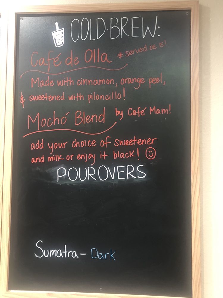 Our house cold brew is made using Cafe Mam's Mocho Blend. Grown by fair trade cooperatives of native Maya farmers living in the highlands of Chiapas, Mexico. It is 100% organic, fair trade certified, shade-grown, high altitude, arabica coffee. Enjoy black or add your favorite sweetener/milk!