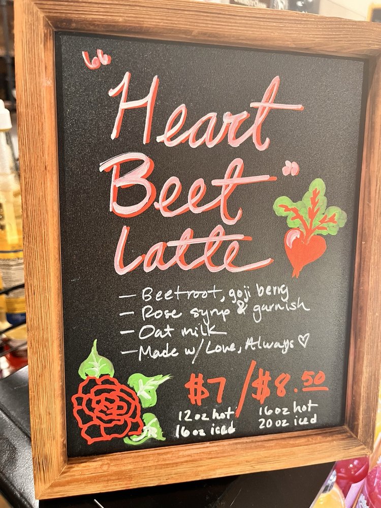 Our popular beet latte base sweetened with rose syrup and topped with rose petals!